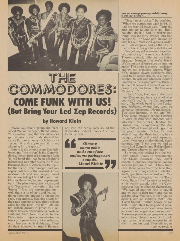 “Now you take a group like Fleetwood Mac or the Zep,” offered Benny. “It’s another thing that the audiences get off into. I don’t understand it because I’m not a heavy rock fan, but I respect it and appreciate it in my planning for the group.”