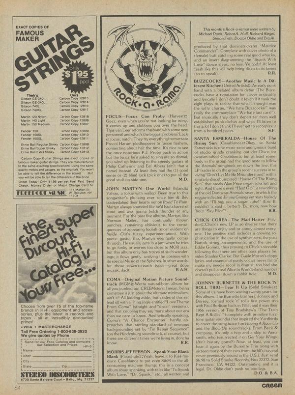 This month's Rock-a-ramas were written by Michael Davis, Robot A. Hull, Richard Riegel, Simon Frith, Doctor Oldie and Big Al.