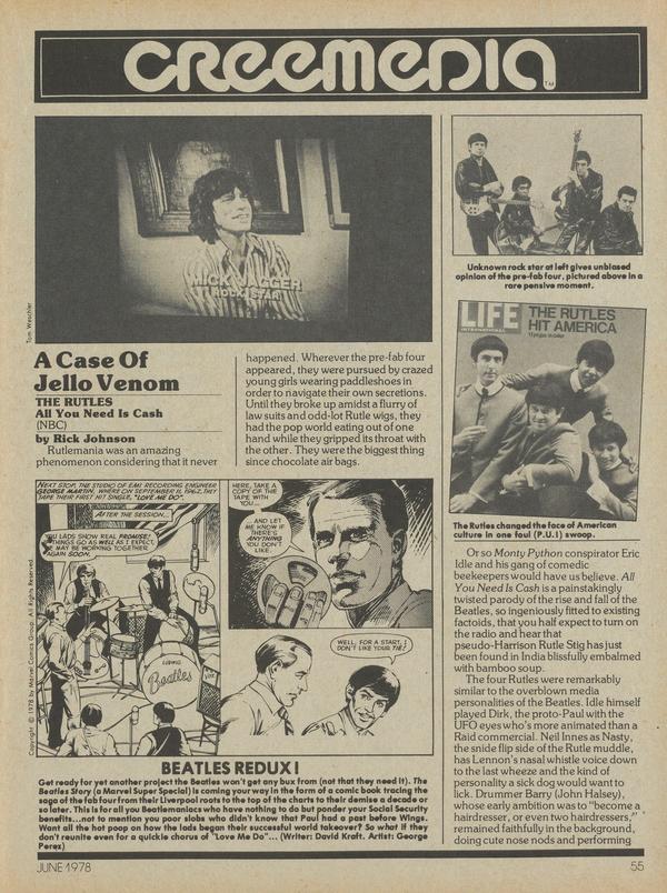 Rutlemania was an amazing phenomenon considering that it never happened. Wherever the pre-fab four appeared, they were pursued by crazed young girls wearing paddleshoes in order to navigate their own secretions. Until they broke up amidst a flurry of law suits and odd-lot Rutle wigs, they had the pop world eating out of one hand while they gripped its throat with the other.