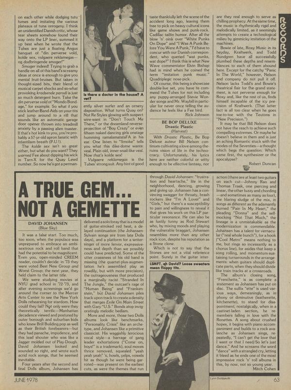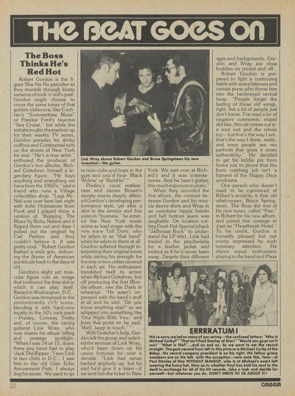 Robert Gordon is the figure Sha-Na-Na parodies as they stumble through klutzy versions of rock 'n' roll's past. Gordon might choose to cover the same tunes of that golden-oldies era, like Cochran's "Summertime Blues" or Frankie Ford's raucous "Sea Cruise," but while the imitations glitz themselves up for their weekly TV series, Gordon parades his slinky coiffure and Continental suits on the streets of New York for real.