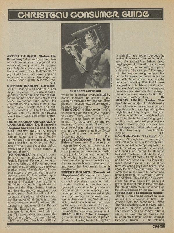 ARTFUL DODGER: "Babes On Broadway" (Columbia):: Okay, two nice albums of power pop go virtually unnoticed, so you up the power, especially since you're running out of the cute tunes 'n' tricks that provide the pop. But then it isn't power pop any more—sounds almost like Angel, or Queen.