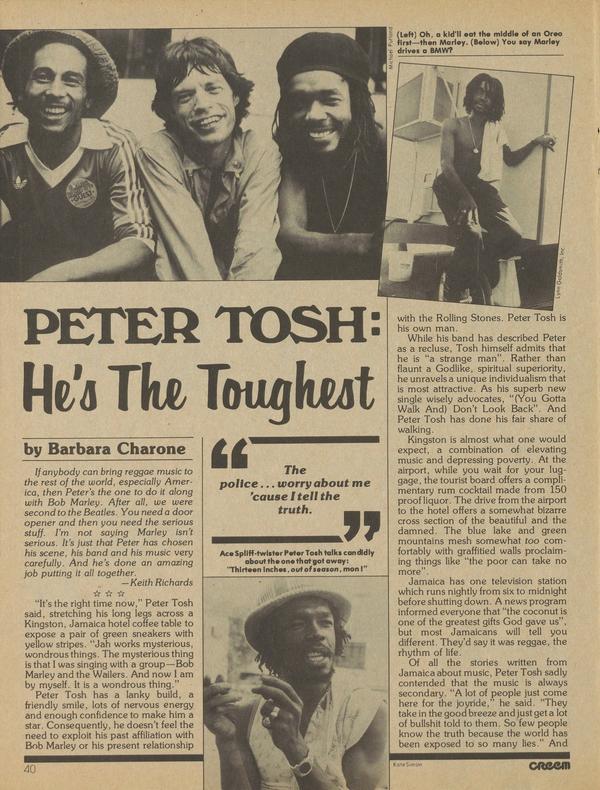 If anybody can bring reggae music to the rest of the world, especially America, then Peter’s the one to do it along with Bob Marley. After all, we were second to the Beatles. You need a door opener and then you need the serious stuff. I’m not saying Marley isn’t serious.