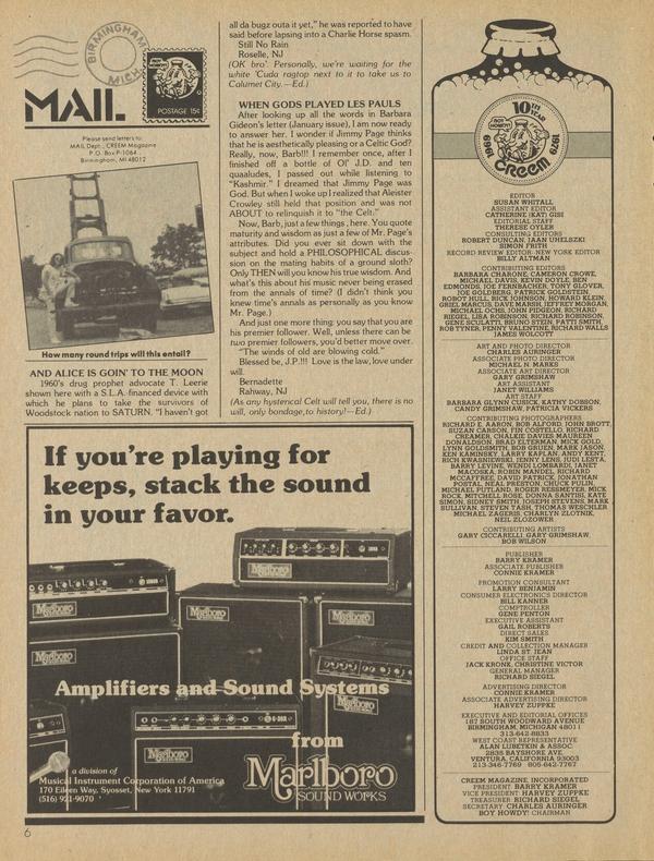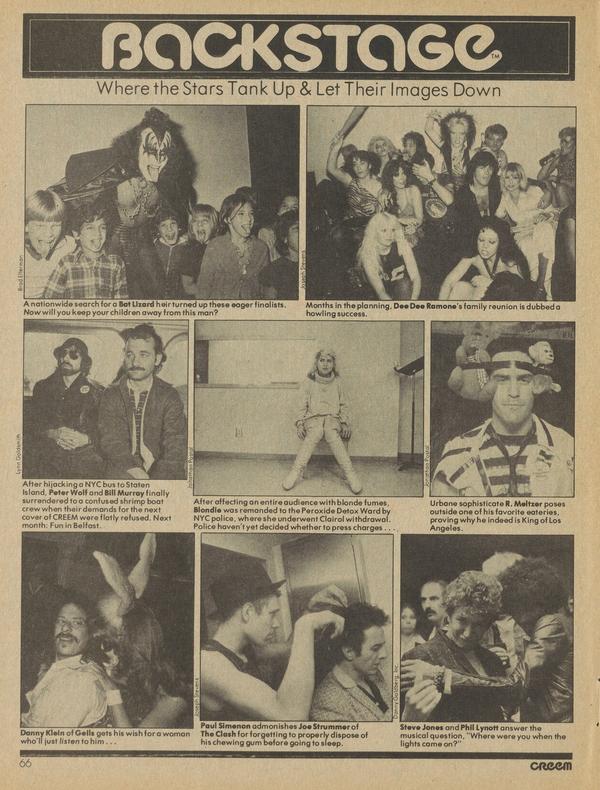 Hi all—glad to see you’ve tuned in once again to the latest word on your fave raves. And this month’s hottest item concerns the Ramones and their forthcoming (Roger Corman-directed) flick, Rock ’n’ Roll High School. Not only did the New Yawk flip tops finish their big screen debut on time (a rather lengthy five week production schedule, by Corman’s standards), but in addition had the good taste to invite CREEM rockcrit and Ramones look-alike Billy Altman along for the ride.