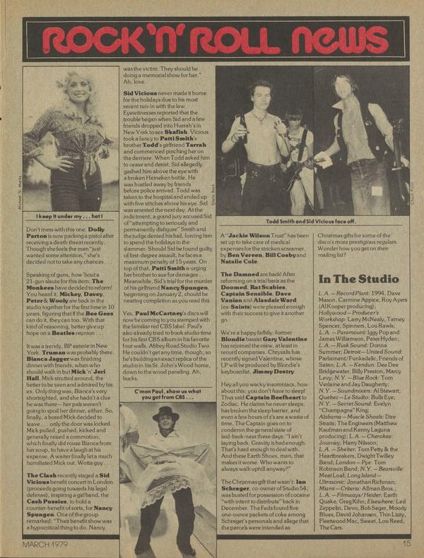 Don’t mess with this one: Dolly Parton is now packing a pistol after receiving a death threat recently. Though she feels the man “just wanted some attention,” she’s decided not to take any chances... Speaking of guns, how ’bout a 21-gun slaute for this item: The Monkees have decided to reform! You heard it, Mickey, Davey, Peter & Wooly are back in the studio together for the first time in 10 years, figuring that if the Bee Gees can do it, they can too.