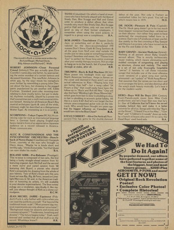 This month’s Rock-a-Ramas were written by Richard Riegel, Michael Davis, Billy Altman and Richard C. Walls.