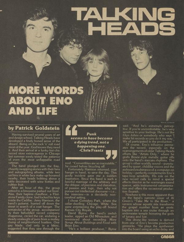 TALKING HEADS: MORE WORDS ABOUT ENO AND LIFE