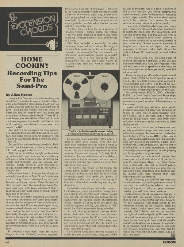 HOME COOKIN'! Recording Tips ForThe Semi-Pro