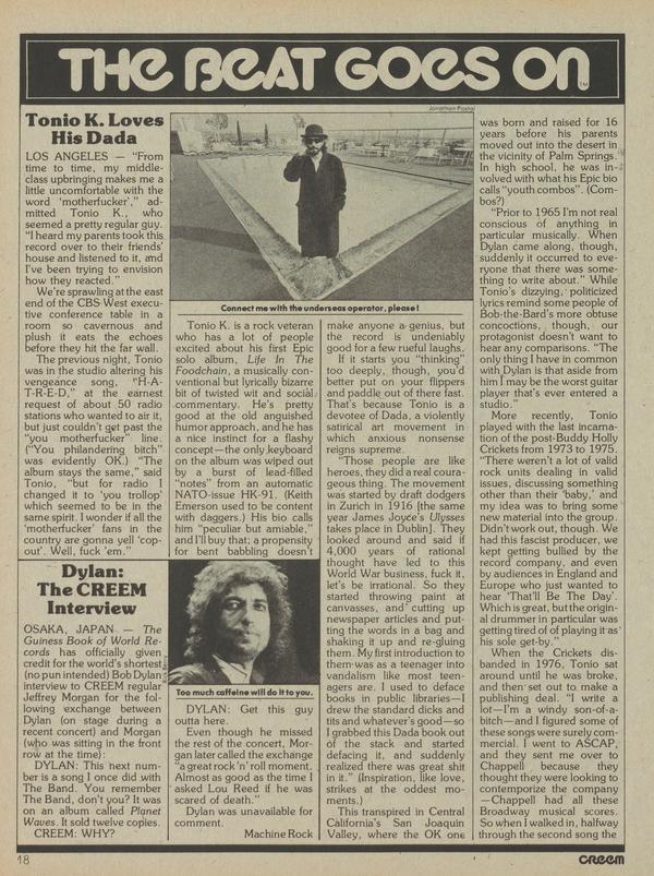 LOS ANGELES - "From time to time, my middleclass upbringing makes me a little uncomfortable with the word 'motherfucker'," admitted Tonio K.; who seemed a pretty regular guy. "I heard my parents took this, record over to their friends' house and listened to it, and I've been trying to envision how they reacted."