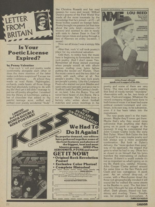 Can rock 'n' roll and poetry nestle comfortably alongside each other or does the mere mention of the latter make rock fans suspicious? Excuse me while I reminisce . . . At school they made us read Keats. Nightingales; orchards, castle feasts: all those things that had absolutely nothing to do with my life! And yet it still didn't manage to put me off-poetry altogether.