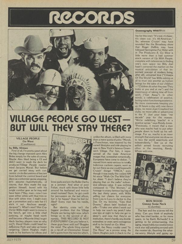 VILLAGE PEOPLE GO WEST, BUT WILL THEY STAY THERE?