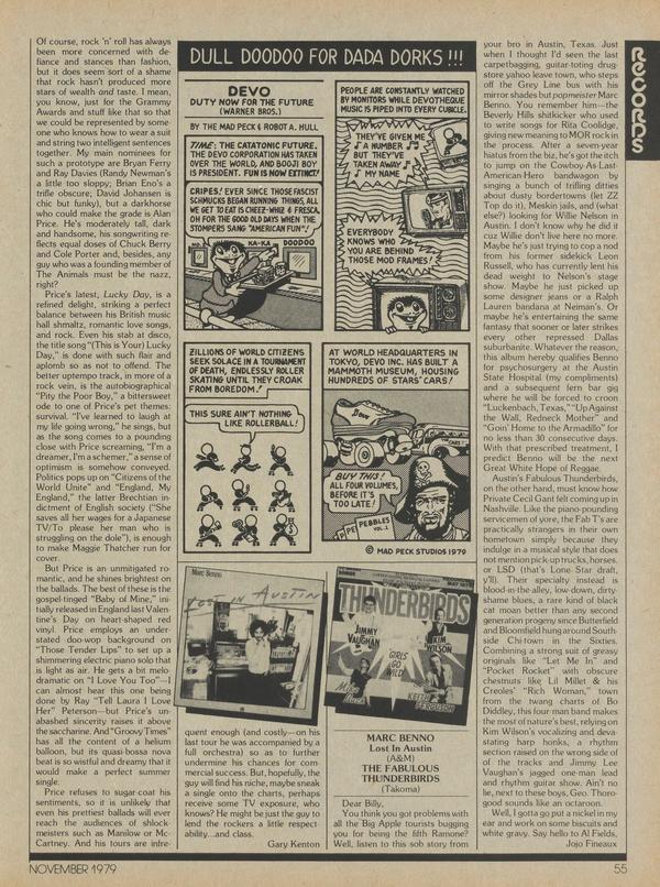 Please send letters to: MAIL Dept., CREEM Magazine P.O.Box P-1064 Birmingham, Ml 48012 I DON'T WANT TO GO TO THE ART DEPT. I'm still shaking—you almost put Elvis Costello on your cover! Well, back in May you gave it ago...how can I possibly thank you for not splashing the "Big Boy's" mug from staple to staple? I know you knew that would only make more people think he sold out, if you had. Going over the letters in your "Mail" section (not one confession, but a few cracked), I saw someone had signed the name "Robin Banks."