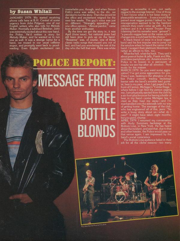 We started receiving phone calls here at B.H. Central of some urgency about this new band, the Police.