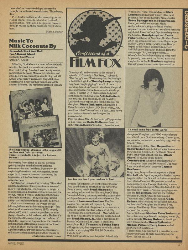 Call her irrepressible: A writer from Rockers magazine in Buffalo wanted an interview with Tim Curry, who just couldn’t find the time to do it. Undaunted, she continued to call New York’s A&M office pleading for some time with the eurosexual rocker: But, alas, no go.