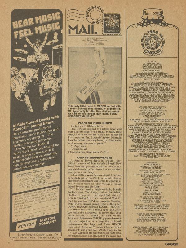 PLANT NO PORK CHOP!! To Joe Blow, (Bellefontaine): I feel I should respond to a letter I have read from a recent issue of this mag. I’m really quite angry! I have never seen such a fox as Robert Plant. As far as “fat,” I wouldn’t say so. He might have had a few too many beers, but I like meat.