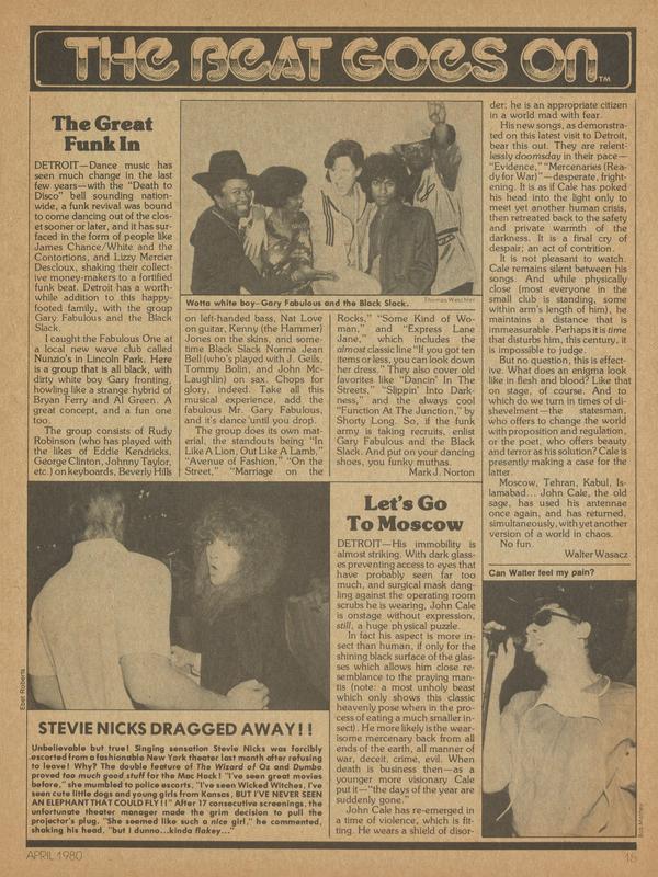 DETROIT—Dance music has seen much change in the last few years—with the “Death to Disco” bell sounding nationwide, a funk revival was bound to come dancing out of the closet sooner or later, and it has surfaced in the form of people like James Chance/White and the Contortions, and Lizzy Mercier Descloux, shaking their collective money-makers to a fortified funk beat.