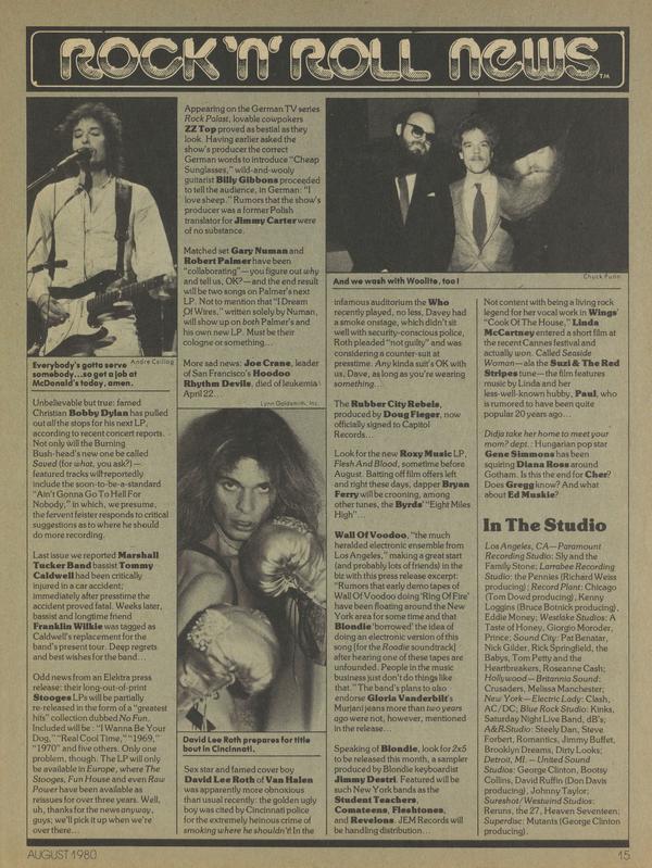Unbelievable but true: famed Christian Bobby Dylan has pulled out all the stops for his next LP, according to recent concert reports. Not only Burning Bush-head’s new one be called Saved (for what, you ask?)featured tracks will resportedly include the soon-to-be-a-standard “Ain’t Gonna Go To Hell For Nobody,” in which, we presume, the fervent feister responds to critical suggestions as to where he should do more recording.