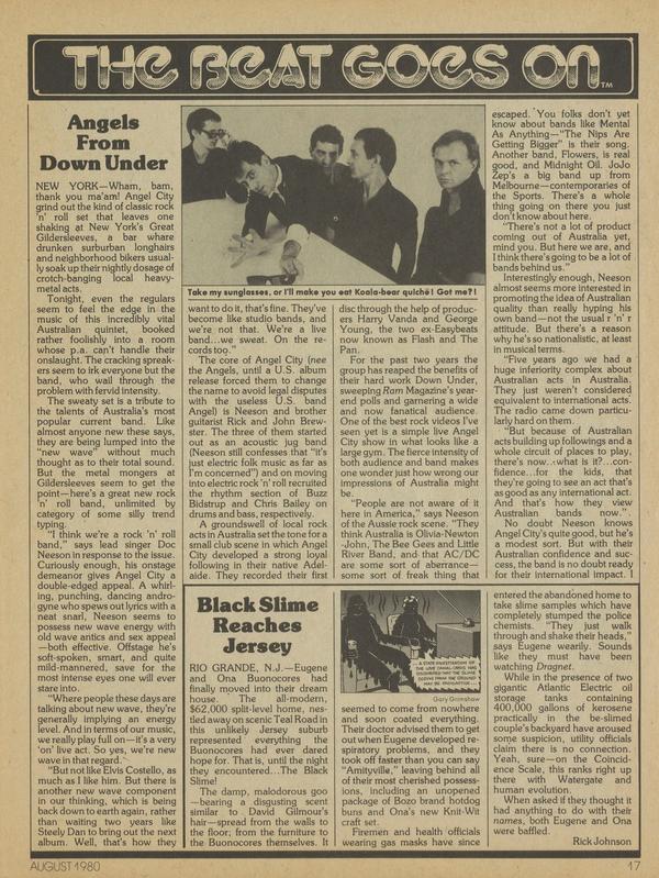 NEW YORK-Wham, bam, thank you ma’am! Angel City grind out the kind of classic rock ’n’ roll set that leaves one shaking at New York’s Great Gildersleeves, a bar whare drunken surburban longhairs and neighborhood bikers usually soak up their nightly dosage of crotch-banging local heavymetal acts.