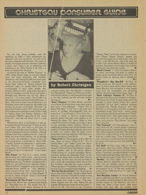 CHRISTGAU CONSUMER GUIDE