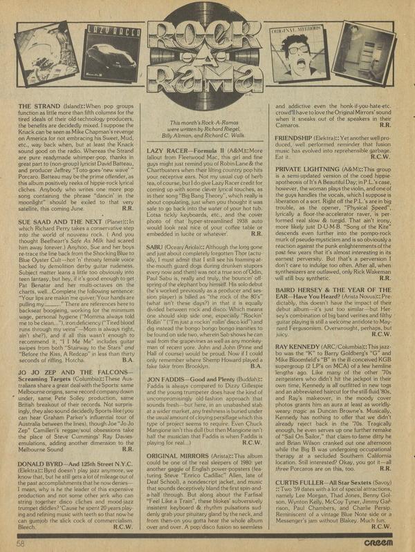 This month’s Rock-A-Ramas were written by Richard Riegel, Billy Altman, and Richard C. Walls.
