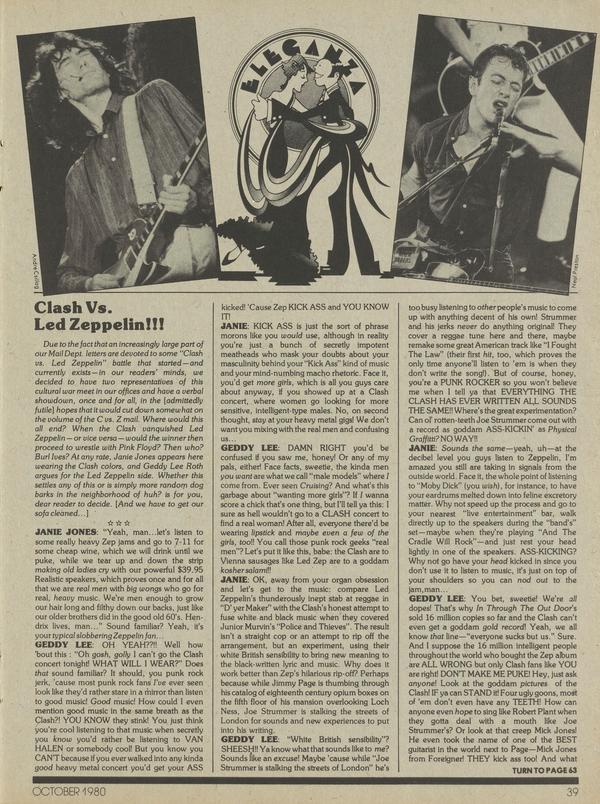 An increasingly large part of our Mail Dept, letters are devoted to some “Clash vs. Led Zeppelin” battle.