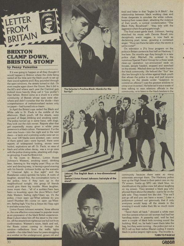 If it was going to happen at all they thought it would happen in Brixton where the clubs being raided all the time sent the black youth to set up their sound systems and I Roy pounded through the open windows, the streets turned to dub.
