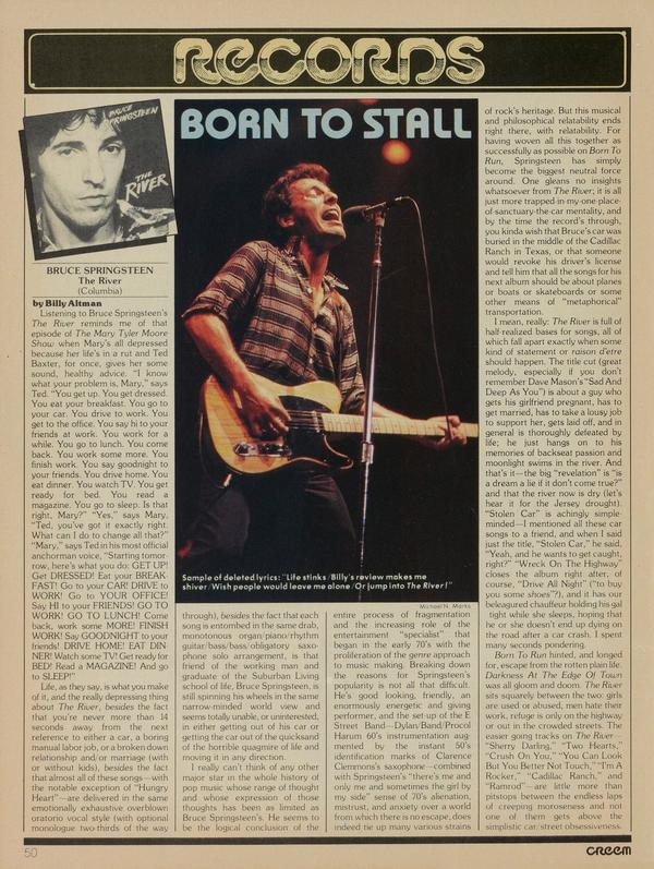 I really can’t think of any other major star in the whole history of pop music whose range of thought and whose expression of those thoughts has been as limited as Bruce Springsteen’s.
