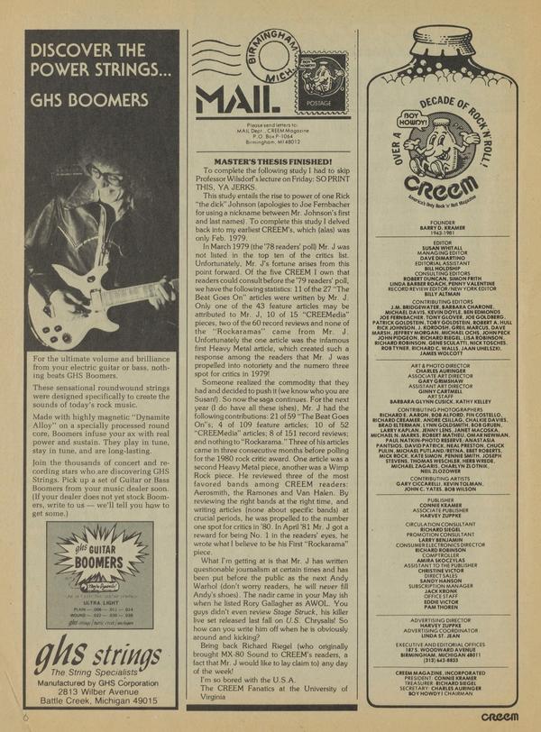 This month’s Rock-A-Ramas were written by Billy Altman, Michael Davis, Rick Johnson and Ira Kaplan.