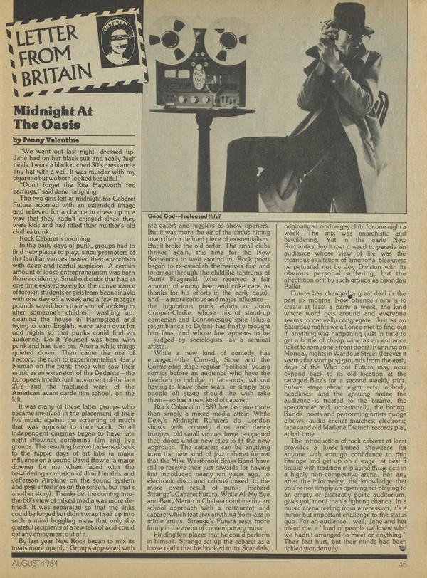 On the day that Bobby Sands finally starved himself to death and two hours after Spandau Ballet’s first ever press conference I’m in the coffee shop of a Manhattan midtown hotel arguing with Gary Kemp— Spand’s composer and synthesizer/guitar player.