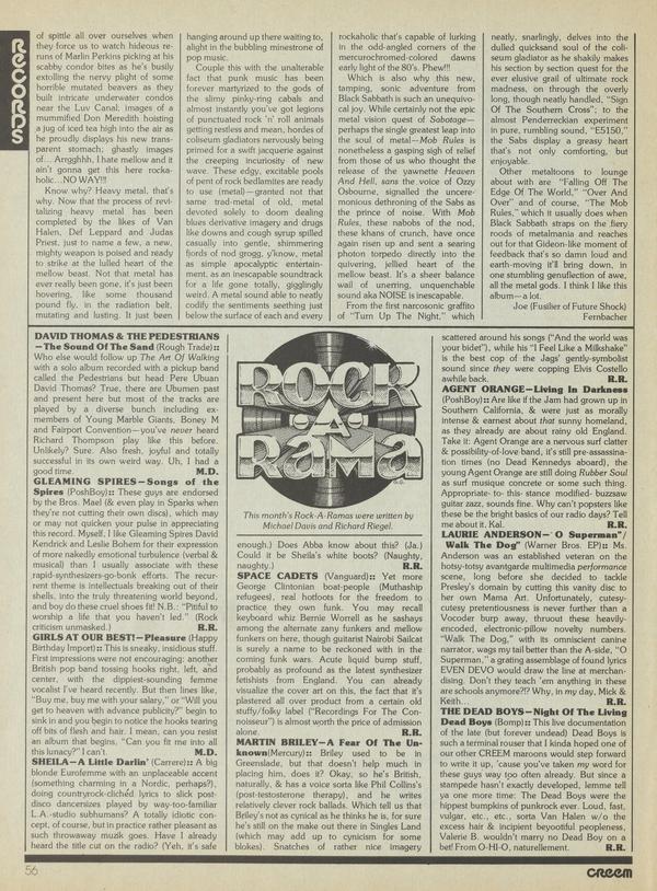 DAVID THOMAS & THE PEDESTRIANS —The Sound Of The Sand (Rough Trade):: Who else would follow up The Art Of Walking with a solo album recorded with a pickup band called the Pedestrians but head Pere Ubuan David Thomas? True, there are Ubumen past and present here but most of the tracks are played by a diverse bunch including exmembers of Young Marble Giants,