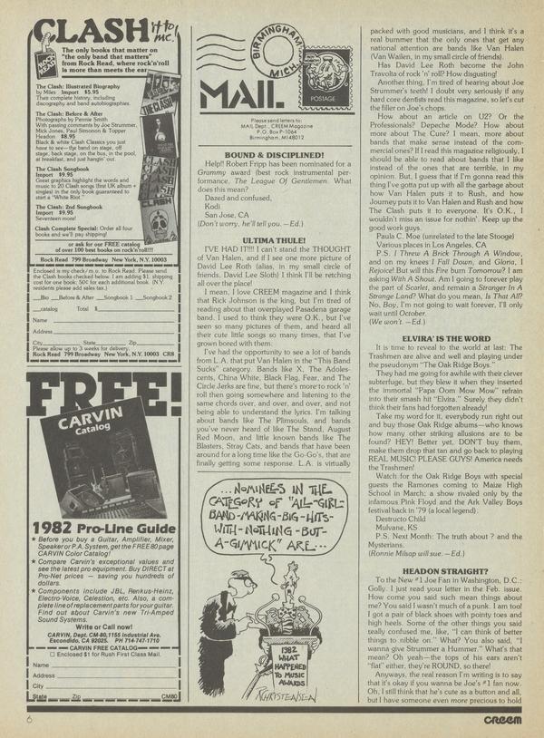 Americas only rock n roll rag discovered a lot of amateur photographic talent out there in CREEM reader land during its So You Wanna Be A Rock Photographer" Photo Contest. The CREEM offices were virtually swamped with photos of everyone from Black Flag to Barry Manilow,