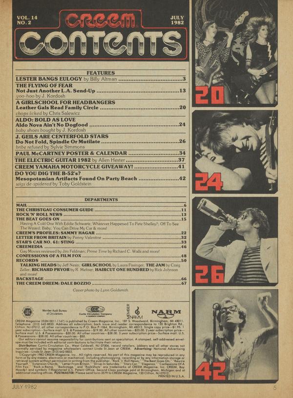 I’ve just finished reading your April 1982 edition of CREEM Magazine, and found it to be the best piece of trash I’ve even read. You people have no class when it comes to interviewing and writing a story about a musical group. Your people think they know everything there is to know about music, when a teenager could give me a better story about a group than any of your reporters could ever write!