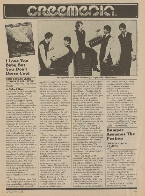 Lester Bangs, bless his no-bullshit soul, ranted on many a critical occasion about the rock ’n’ roll makers’ persistent vice of substituting the applied style of sartorial flair for musical content. Bangs railed loud enough when his beloved Lou Reed hid behind his too-cool mirror shades for a season or two, but he reserved the most severe hellfire condemnations for the eternally trendy English rockers, who seemed to change their total styles more often than most Americans did their underwear.