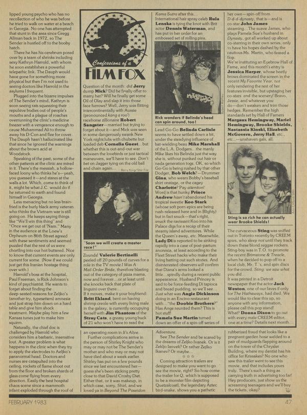 Please send letters to; MAIL Dept., CREEM Magazine P.O. Box P-1064 Birmingham, Ml 48012 ROCK AGAINST POTTY-MOUTH Please be advised that a large share of your readership is comprised of young girls under the age of eight or nine. Did you ever hear an eightyr.-old use some of the language you clowns print?