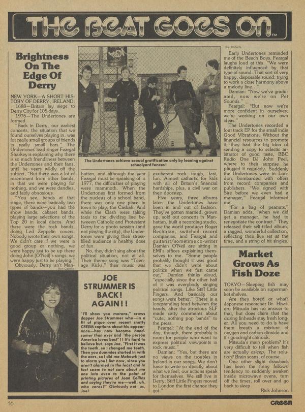 NEW YORK—A SHORT HISTORY OF DERRY, IRELAND: 1688—Britain lay siege to Derry City for 105 days. 1976—The Undertones are formed. “Back in Derry, our earliest concerts, the situation that we found ourselves playing in, was for really small groups of friends in really small bars.”