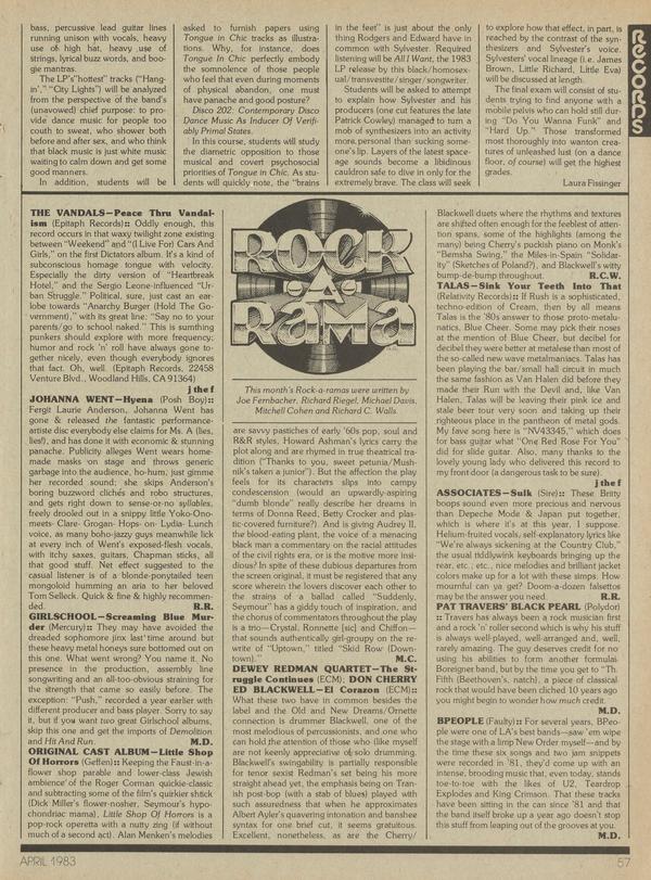 This month’s Rock-a-ramas were written by Joe Fembacher, Richard Riegel, Michael Dauis, Mitchell Cohen and Richard C. Walls.