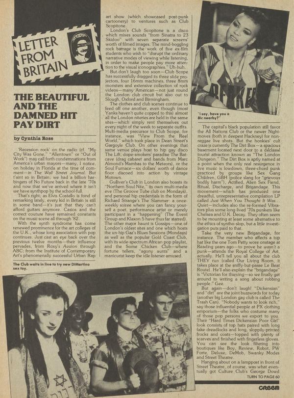 'Recession rock' on the radio (cf. "My City Was Gone," "Allentown" or "Out of Work") may call forth condemnations from America's urban mayors-many, I notice, on holiday in Florida at the time of com rnent-in The Wall Street Journal. But t'aint so in Britain; we had a billion har bingers of No Future back in the late `70s and now that we've arrived where it isn't we have synthpop by the school-full.