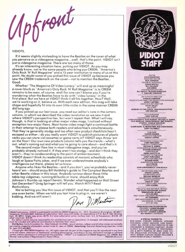 VIDIOTS, If it seems slightly misleading to have the Beatles on the cover of what you perceive as a videogame magazine...well, that's the point. VIDIOT isn't just a videogame magazine. There are too many of those. It's an interesting situation here, putting out VIDIOT.