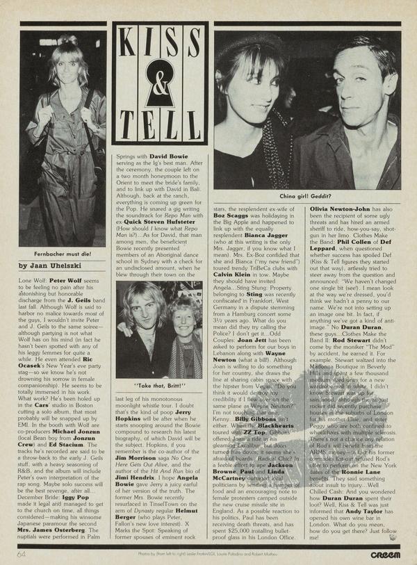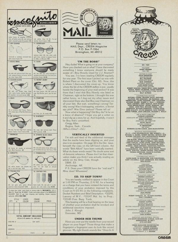 Hey dudes! What is going on at your company? Have you checked out or what? I have discovered something 1 knew everyone should be made aware of—Boy Howdy nixed for J.J. Kramer!? You see, I’ve been reading CREEM regularly for one year. The first issue I picked up was with Robert Plant on the cover (Oct. 82).