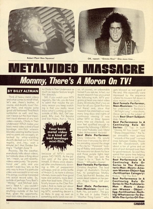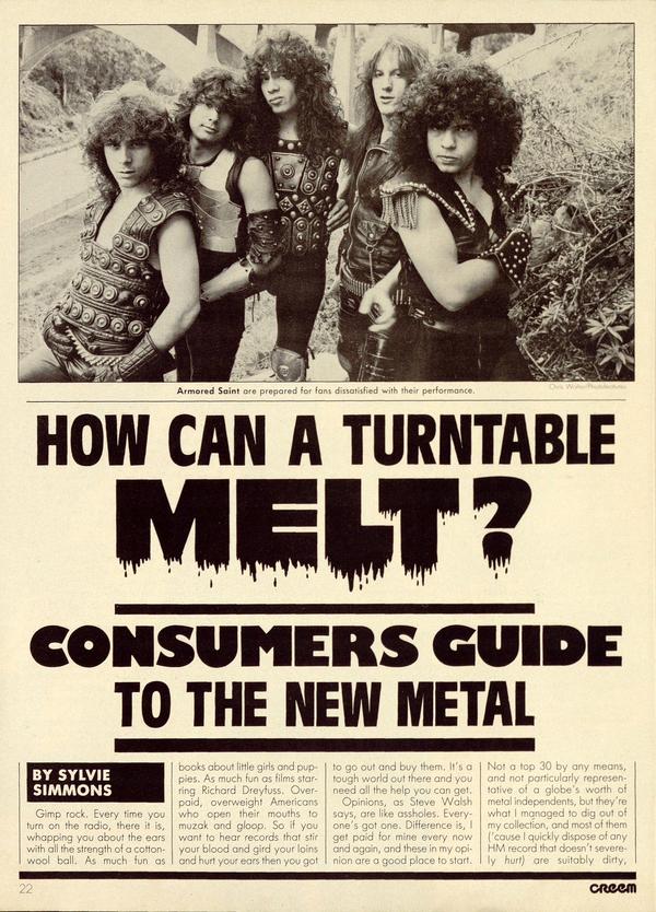 Let's see now, is heavy metal dead or not this month? (Refers to CREEM's handy Deod/Not Dead Editorial Calendar) Hmmm...psychedelic hula is dead this month...so is speech-afterremoval-of-larynx country blues. Uh...knock-knock accordion power trios are alive this month, so is heavy clambake watusi, heavy Finnish breakdown film noir background dubbing noises, and...OK, yeah, here it is—heavy metal is alive and well!