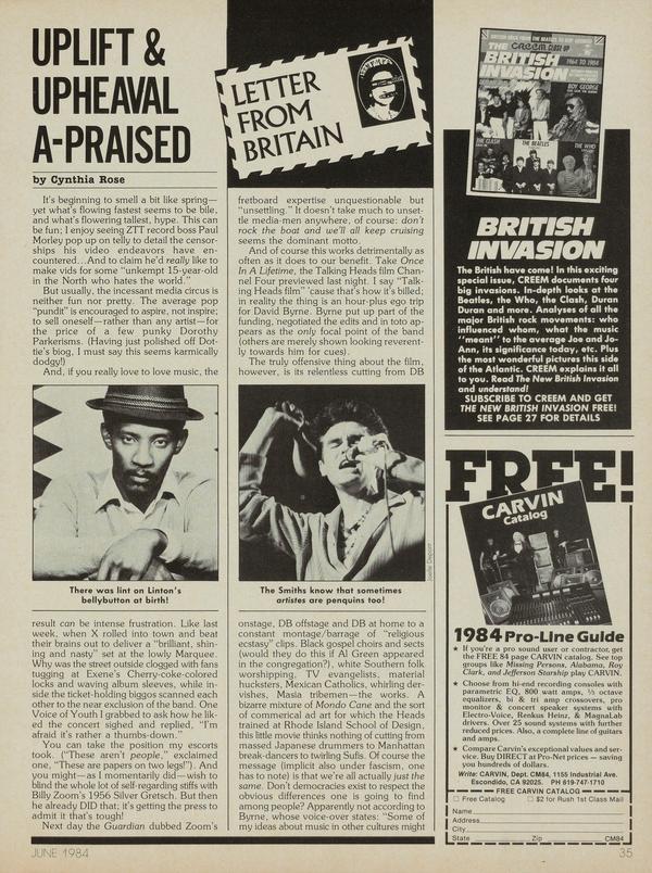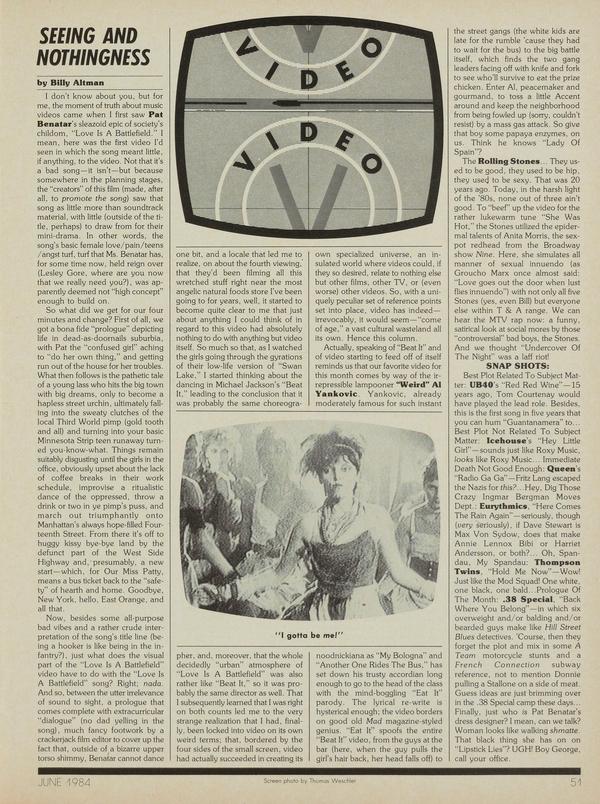 It’s beginning to smell a bit like spring— yet what’s flowing fastest seems to be bile, and what’s flowering tallest, hype. This can be fun; I enjoy seeing ZTT record boss Paul Morley pop up on telly to detail the censorships his video endeavors have encountered...And to claim he’d really like to make vids for some “unkempt 15-year-old in the North who hates the world.”