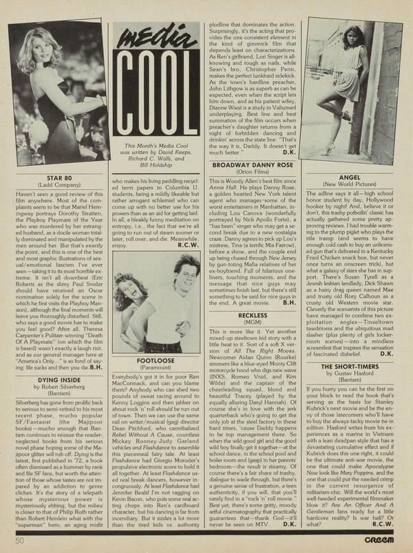 Haven’t seen a good review of this film anywhere. Most of the complaints seem to be that Mariel Hemingway portrays Dorothy Stratten, the Playboy Playmate of the Year who was murdered by her estranged husband, as a docile woman totally dominated and manipulated by the men around her.