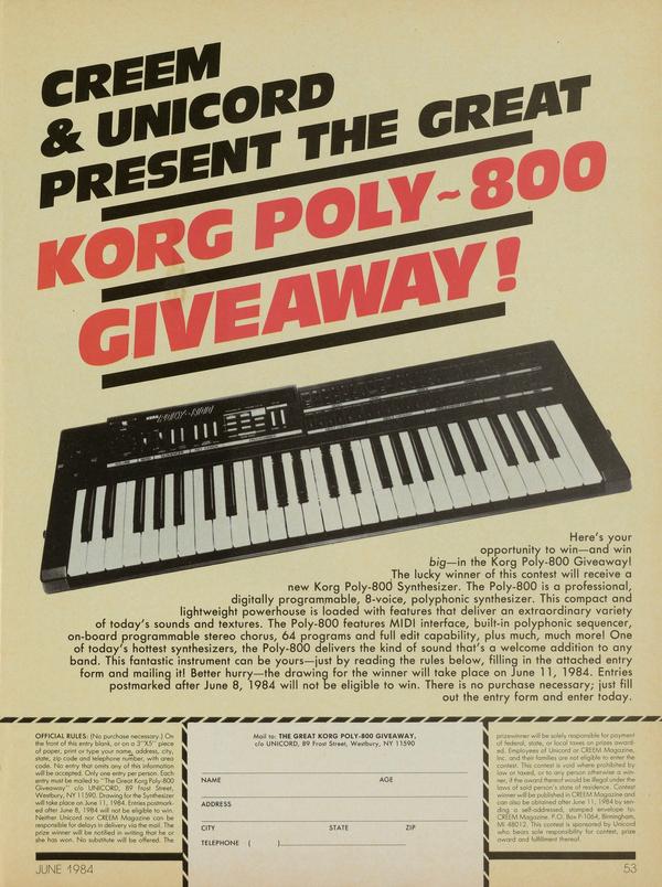 THE GREAT KORG POLY-800 GIVEAWAY!