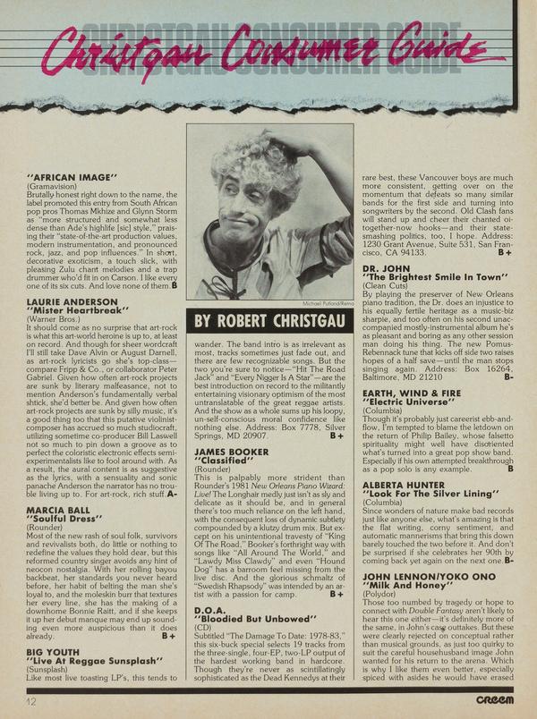 Annie Lennox, Duran Duran, Michael Jackson—if 1983’s music had any message at all, it was: “Be beautiful, be hip, be cool—be like me.” New music has inevitably led up to the same indulgences as old music. Well, that was last year. You can forget that now.