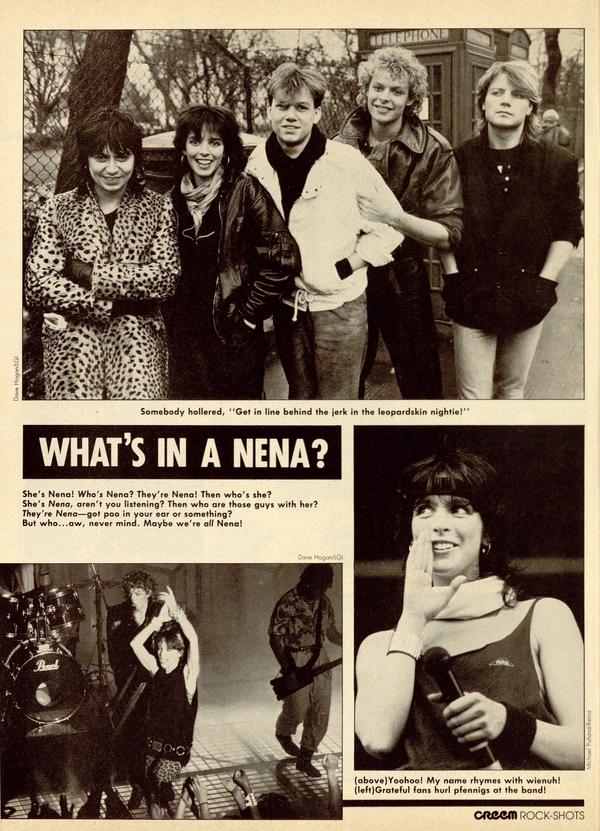 She's Nena! Who's Nena? They're Nena! Then who's she? She's Nena, aren't you listening? Then who are those guys with her? They're Nena—got poo in your ear or something? But who...aw, never mind. Maybe we're all Nena!