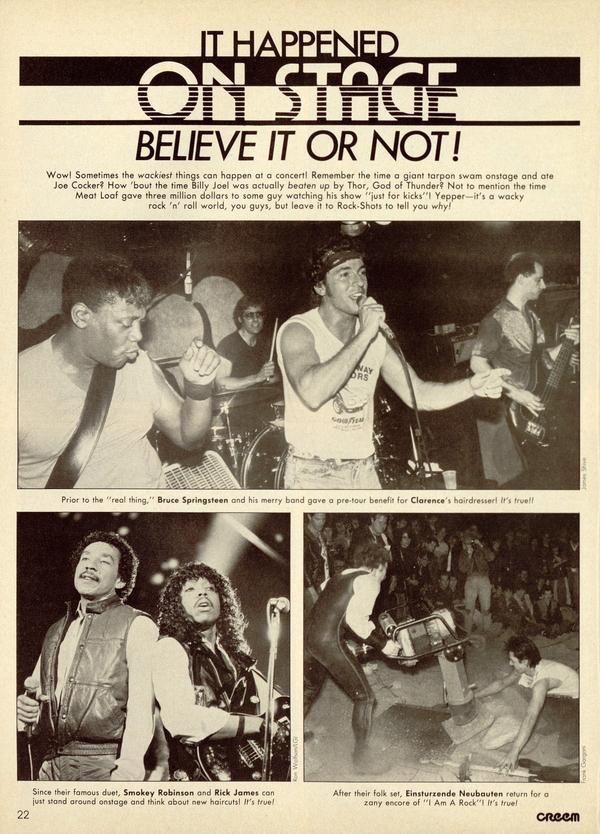 Wow! Sometimes the wackiest things can happen at a concert! Remember the time a giant tarpon swam onstage and ate Joe Cocker? How 'bout the time Billy Joel was actually beaten up by Thor, God of Thunder? Not to mention the time Meat Loaf gave three million dollars to some guy watching his show "just for kicks"!