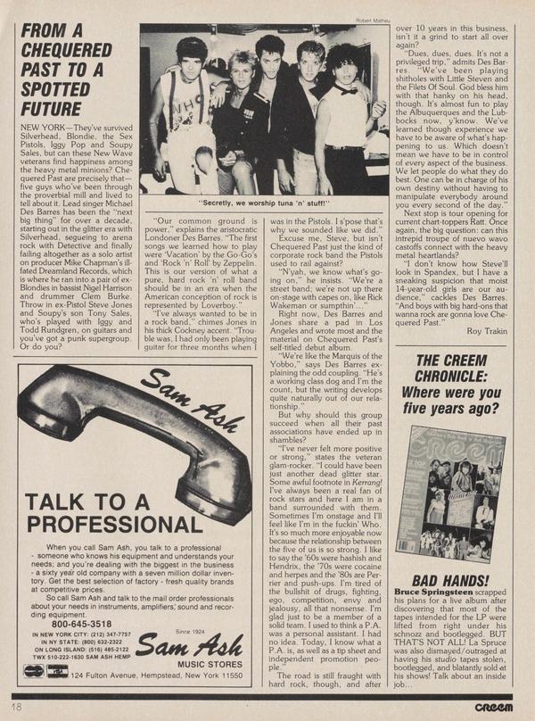 NEW YORK—They’ve survived Silverhead, Blondie, the Sex Pistols, Iggy Pop and Soupy Sales, but can these New Wave veterans find happiness among the heavy metal minions? Chequered Past are precisely that— five guys who’ve been through the proverbial mill and lived to tell about it.