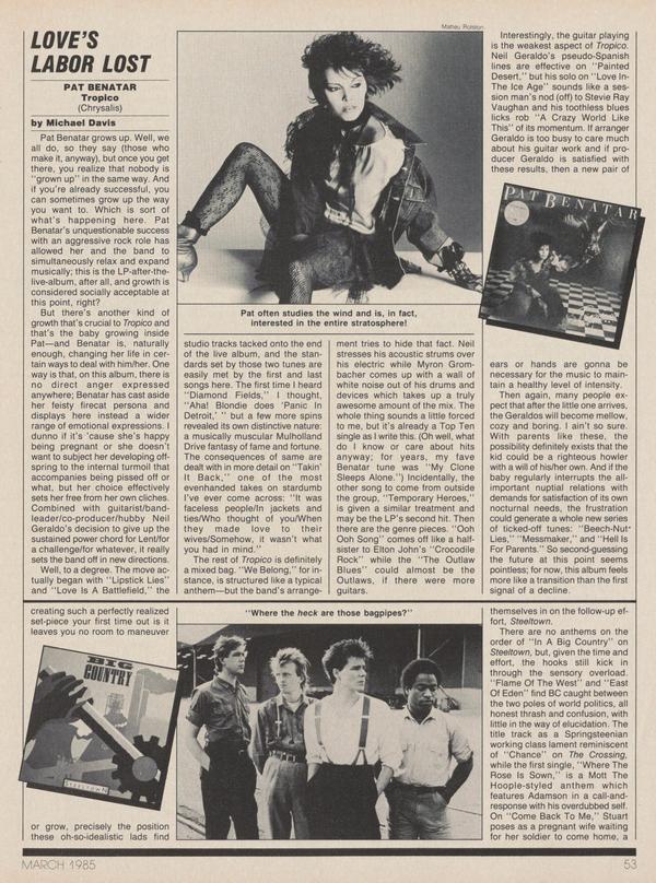 Pat Benatar grows up. Well, we all do, so they say (those who make it, anyway), but once you get there, you realize that nobody is “grown up” in the same way. And if you’re already successful, you can sometimes grow up the way you want to. Which is sort of what’s happening here.