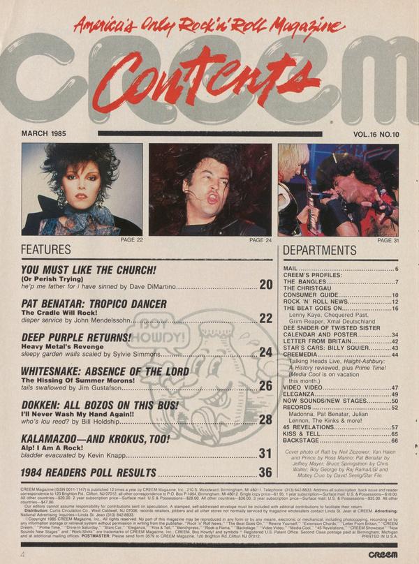 THE WINNERS CREEM '84 ROCK 'N' ROLL READERS POLL