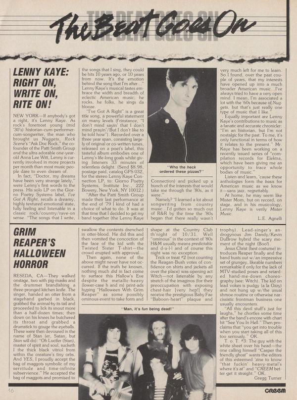 LENNY KAYE: RIGHT ON, WRITE ON, RITE ON!