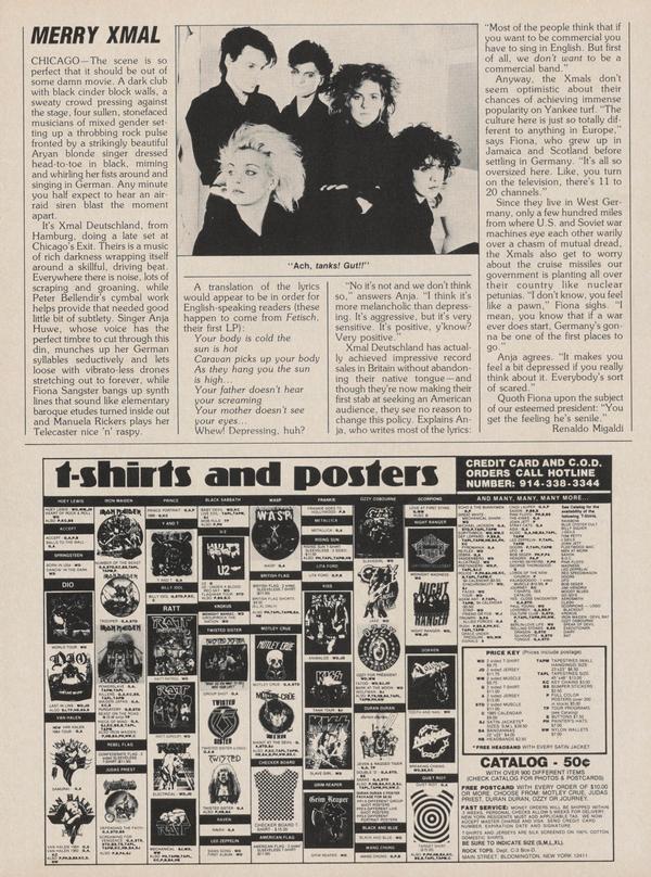 CHICAGO—The scene is so perfect that it should be out of some damn movie. A dark club with black cinder block walls, a sweaty crowd pressing against the stage, four sullen, stonefaced musicians of mixed gender setting up a throbbing rock pulse fronted by a strikingly beautiful Aryan blonde singer dressed head-to-toe in black, miming and whirling her fists around and singing in German.